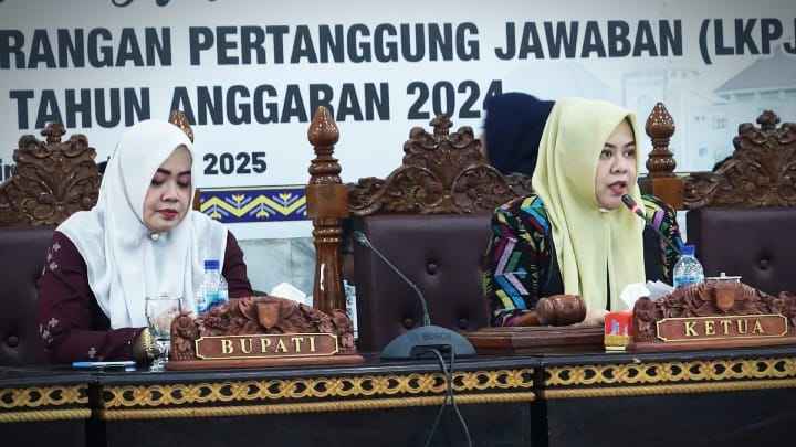 Kabupaten Bima, Solusinewsntb.- Ketua DPRD Kabupaten Bima Diah Citra Pravitasari memimpin Rapat Paripurna dalam penyampaian Laporan Keterangan Pertanggungjawaban (LKPJ) Tahun Anggaran 2024 oleh Bupati Bima Hj. Indah Dhamayanti Puteri di ruang sidang utama DPRD, Kamis (30/1/2025).