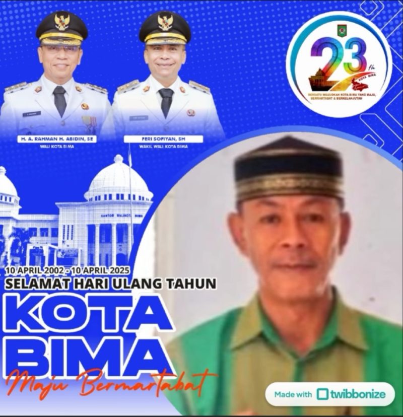 Lurah Monggonao Mengucapkan HUT Kota Bima Ke-23 Tahun 2025 solusinews ntb9 April 2025187 Dilihat Pos terkaitPemkab Bima Kucurkan Rp.18,2 Miliar untuk Tangani 9 Ruas Jalan KabupatenWali Kota Bima Terima Audiensi FUI, Bahas Penertiban Miras di Area WisataPemkot Bima Dukung Program BAZNAS Siapkan Seribu Gerobak PKL untuk Warga MiskinKetua DPRD Kabupaten Bima Terima Aspirasi Guru Swasta, Rekomendasikan ke PusatSelasa Menyapa di Bolo, Bupati Bima Serahkan Bantuan hingga Deklarasi Anti NarkobaDPRD Kota Bima Serahkan Tuntutan Mahasiswa ke DPR RI, Hanya Sehari Usai Demo