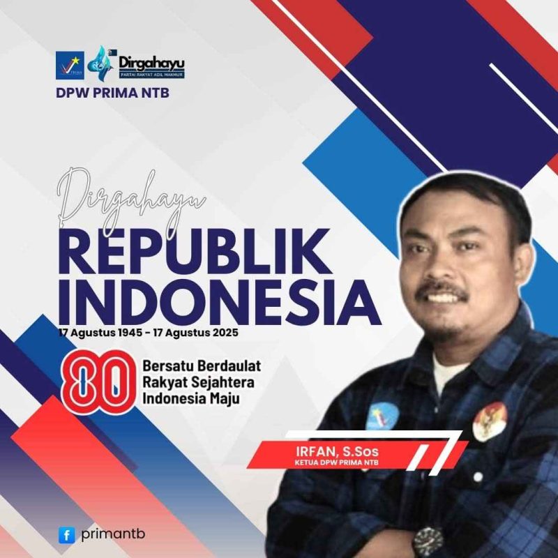 Ketua DPW PRIMA Mengucapkan Dirgahayu HUT RI Ke-80 Tahun 2025 solusinews ntb17 Agustus 2025113 Dilihat Ketua DPW PRIMA Mengucapkan Dirgahayu HUT RI Ke-80 Tahun 2025 Pos terkaitDipilih Secara Aklamasi, Dae Pawan Pimpin Golkar Kota Bima 3 PeriodeDipilih Aklamasi, Dae Pawan Pimpin Golkar Kota Bima 3 PeriodeDianggap Berprestasi, Dae Pawan Siap Pimpin Golkar Kota Bima 3 PeriodeTurun Aksi, LMND Kota Bima Soroti Nasib PKL yang Tergusur dan Gas 3 KgGubernur NTB Bicara Pariwisata, Tapi Disebut Buka Jalan TambangKetua DPD II Golkar Kota Bima Mengucapkan Dirgahayu HUT RI Ke-80